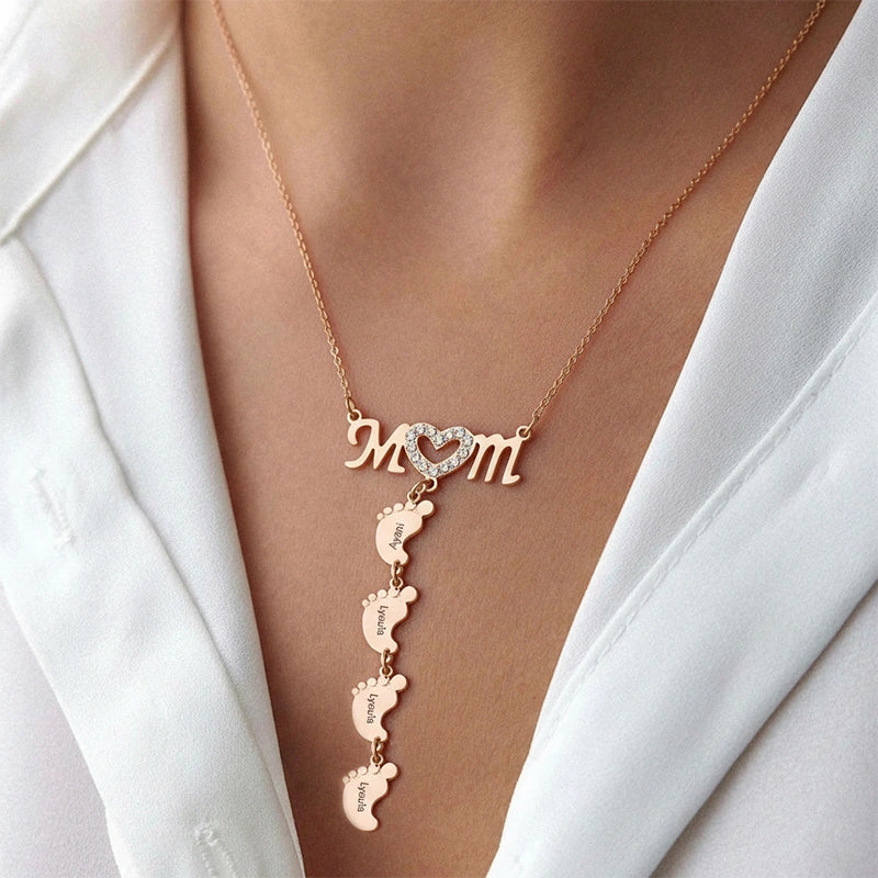Personalized Baby Feet Name Necklace – Custom Mother’s Day Necklace for Mom