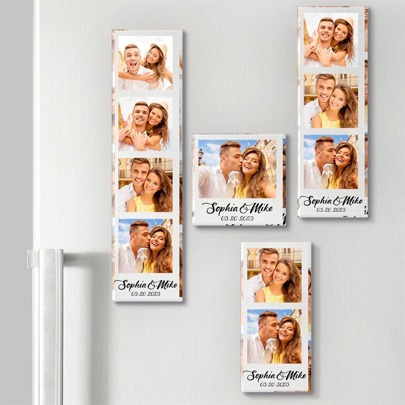 Personalized Acrylic Fridge Magnet 1–4 Photo Grid – Custom Photo & Text Refrigerator Magnet Gift