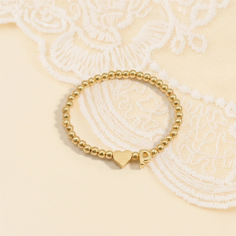 Personalized Mom & Kids Initial Bracelet – Gold Bead Matching Family Bracelet with Heart Charm