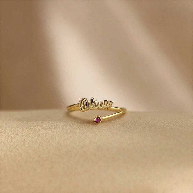 Handmade Personalized Name Ring with Birthstone – Dainty Sterling Silver Adjustable Ring, Custom Name Jewelry Gift for Mom, Best Friend & Her