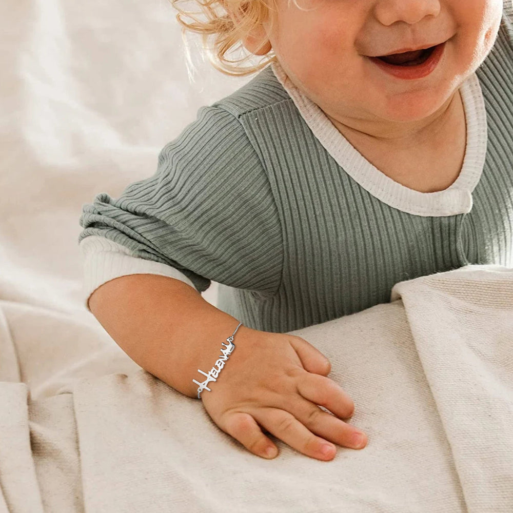 Personalized Boys and Girls Stainless Steel Baby Name Bracelets with Clasp