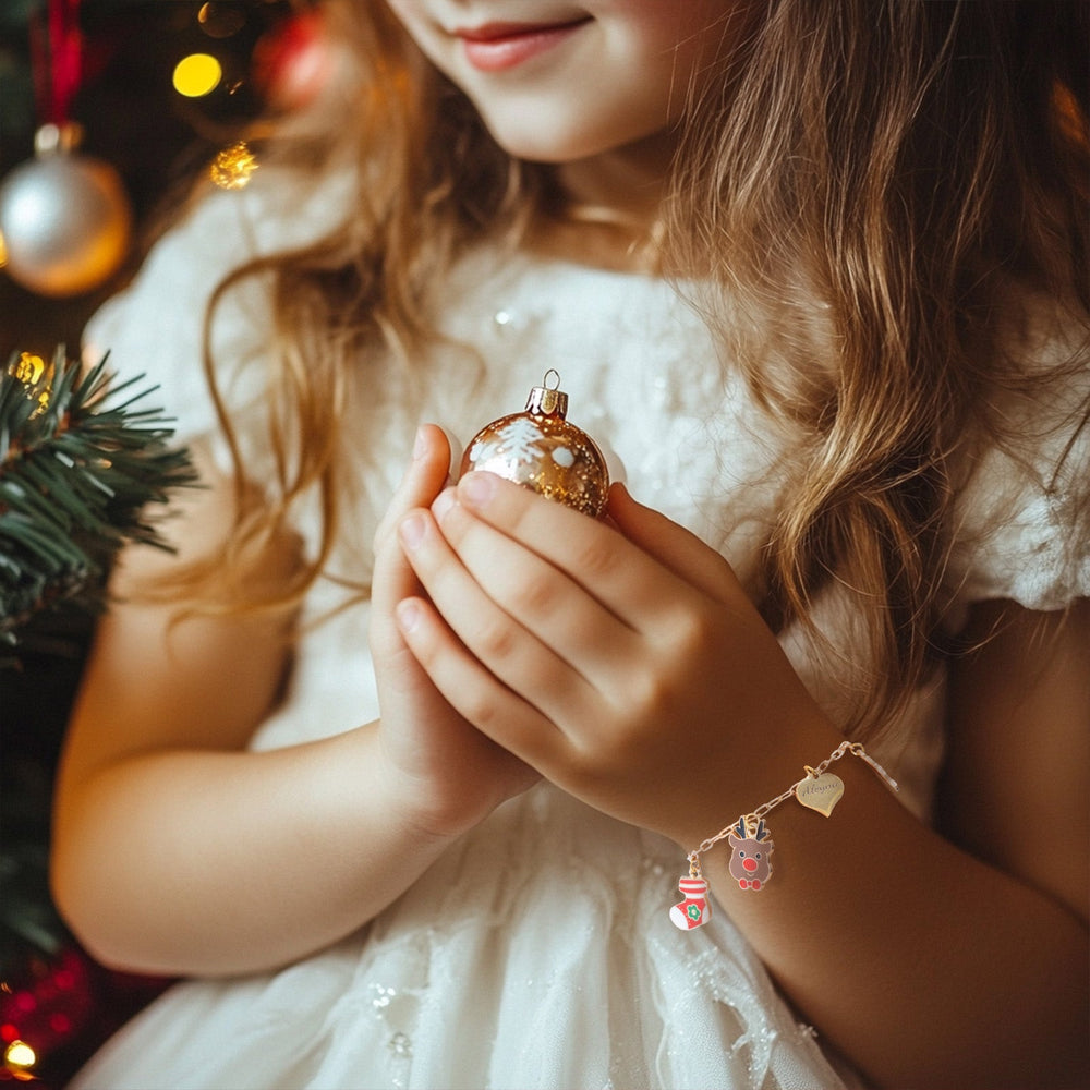 Personalized Christmas Charm Bracelet for Kids – 14K Gold-Plated, DIY Holiday Keepsake
