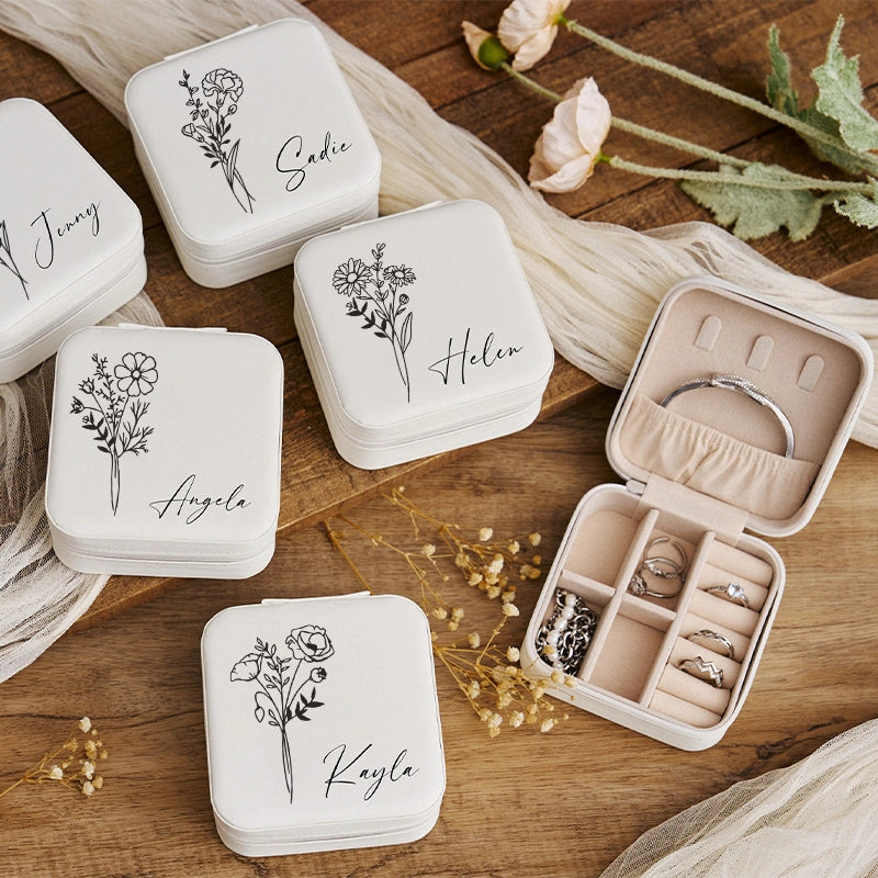Perfect for bridesmaid proposals, wedding day gifts, bachelorette trips, birthdays, or everyday travel, this small square jewelry box keeps her favorite pieces protected and organized wherever she goes.