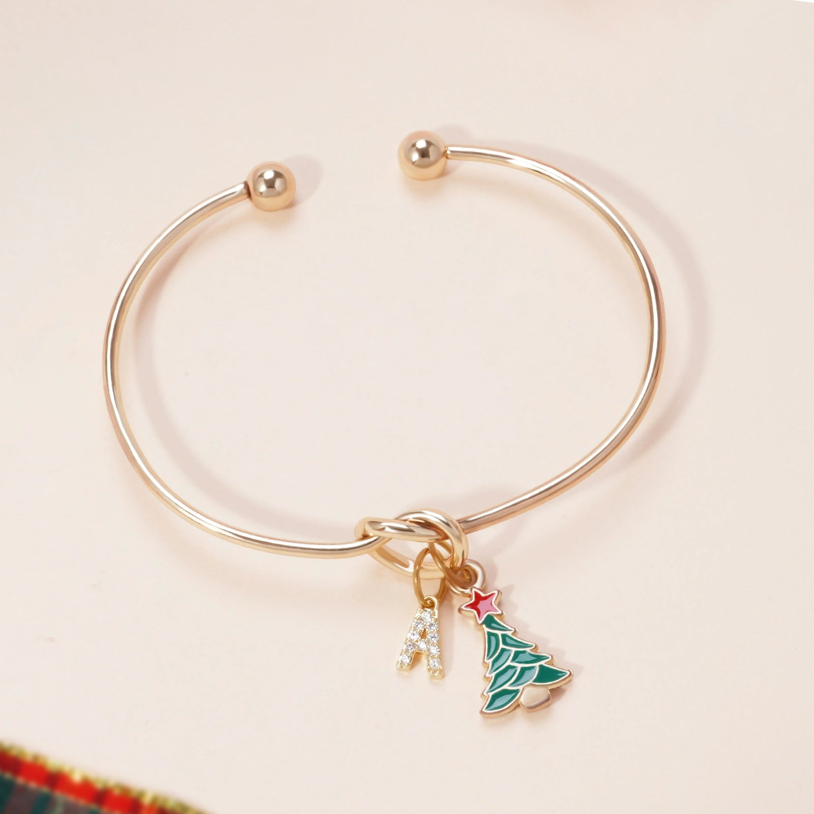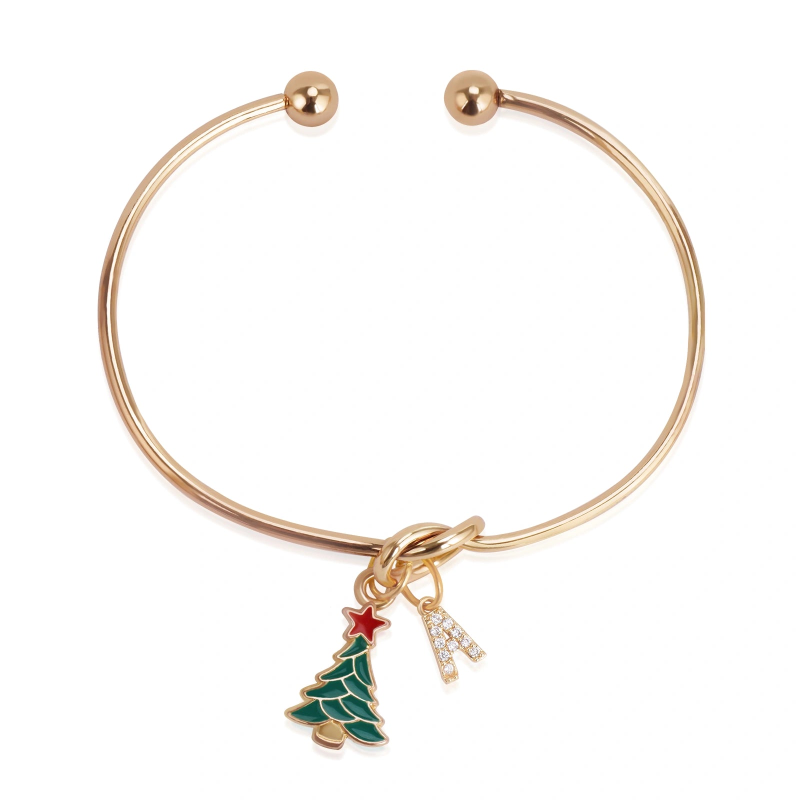 Custom Christmas Tree Bracelet with Rhinestone Letter Charm – Adjustable Holiday Jewelry Gift