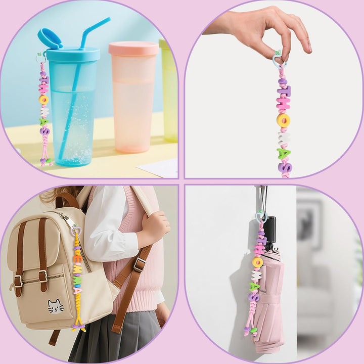 Custom letter keychains, DIY beaded backpack lanyards, back-to-school gifts for boys and girls