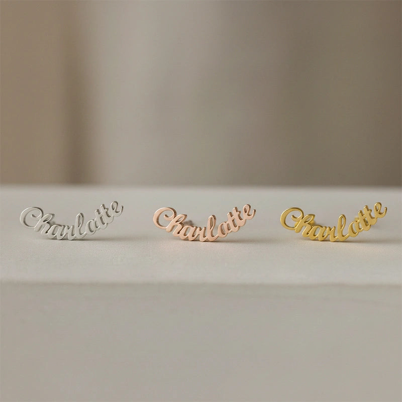 Add meaning to everyday style with our Custom Name Earrings, a delicate and timeless piece designed to celebrate the names that matter most. Thoughtfully handcrafted, these personalized minimalist stud earrings blend elegance with sentiment, making them a beautiful gift she’ll cherish for years.