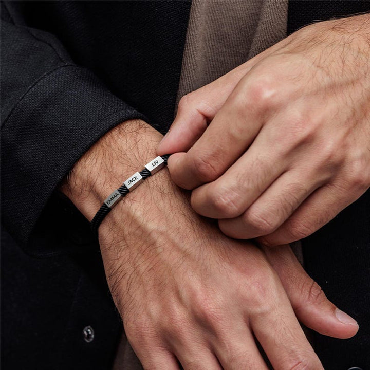 The soft cord wraps naturally around the wrist, while the engraved beads stand as timeless reminders of children’s names, birthdays, or milestones Dad will always hold close.