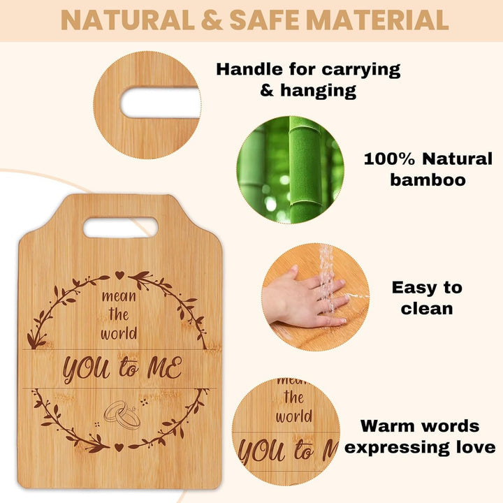 Crafted from premium, eco-friendly bamboo, this heart-shaped cutting board is naturally waterproof, quick-drying, and resistant to stains or moisture. Its smooth, non-stick surface is polished to perfection with rounded edges for safety, while laser-engraved heartfelt messages and designs ensure lasting clarity. Durable and tool-friendly, it blends practicality with sentimental artistry.