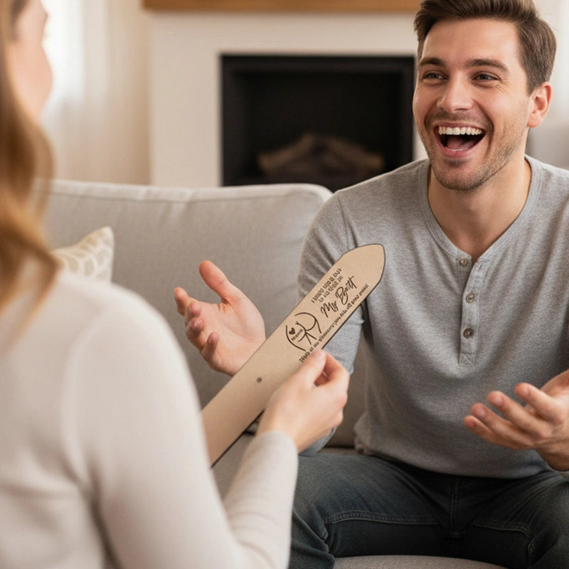 Crafted from genuine leather, this custom belt isn’t just funny — it’s made to last. The discreet engraving on the inside keeps the message just between you two, making it a playful secret he’ll carry with him every day.