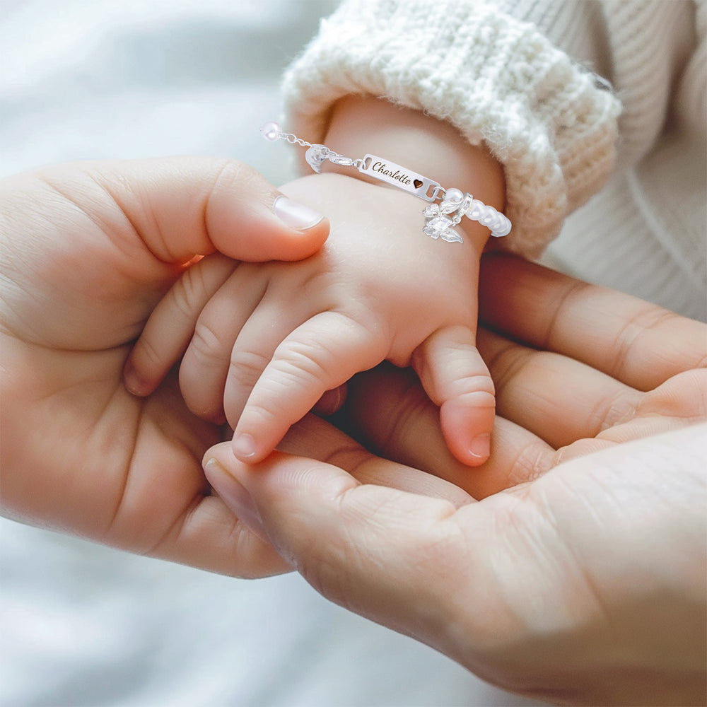 Looking for something that holds all your love for your child? This personalized birthstone bracelet is the keepsake North American moms adore. Engraved with their name and accented with a sparkling birthstone, it’s more than jewelry—it’s a way to carry your affection right on their little wrist.
