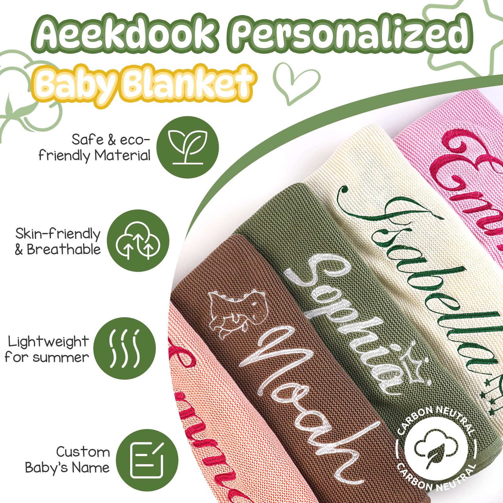 Personalized Baby Name Blanket, Custom Knit Blanket Embroidered with Name,Newborn for Boy/Girl