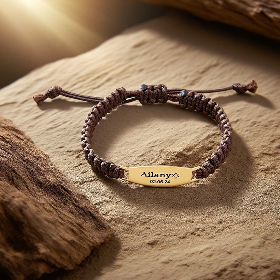 Each bracelet is handmade from premium hypoallergenic materials, ensuring safety for newborns and infants. The soft woven band or delicate chain is comfortable against your baby’s skin, while the engraved nameplate adds a one-of-a-kind touch — perfect for engraving your baby’s name, initials, birthdate, or a sweet word like “Love” or “Sunshine.”
