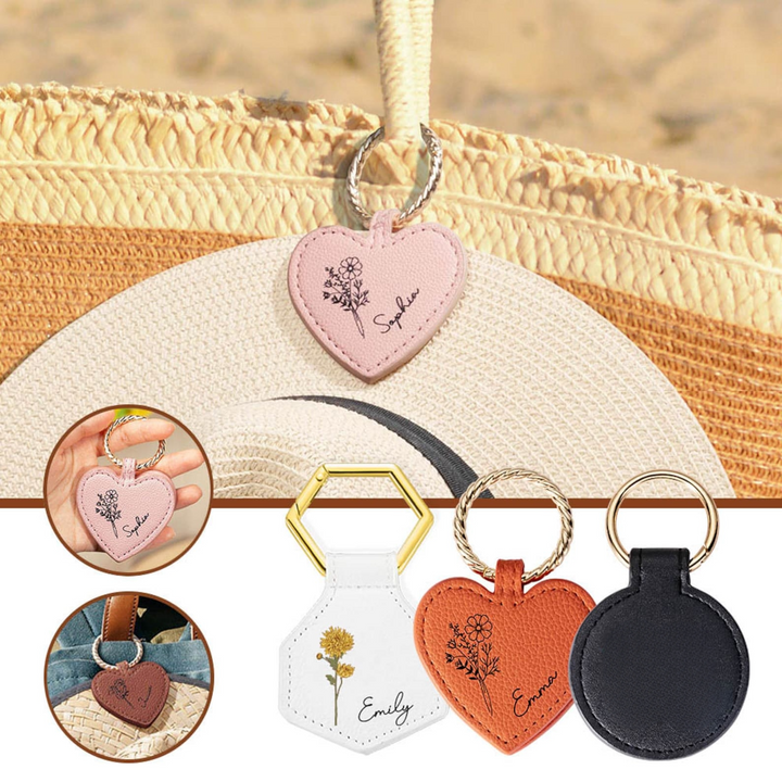 Made from premium braided leather, this hat clip combines durability with timeless style. Choose from two shapes (heart, circle) and multiple colors (black, pink, white, brown, orange) to match your aesthetic. Customize with name (up to 10 characters) or birth flower art (line or color design) to add a personal touch. Designed with a sturdy clip, it securely attaches your hat to your bag, backpack, or luggage, blending practicality with stylish travel elegance.