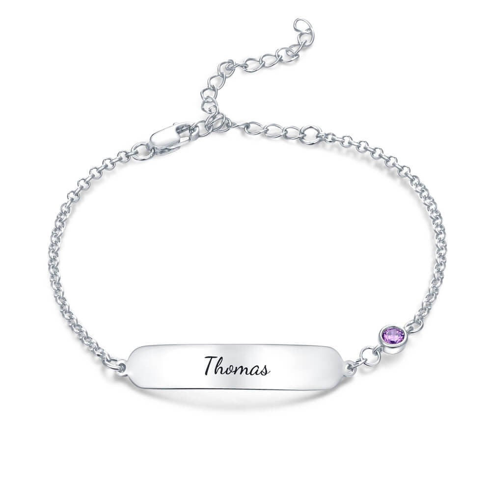 Personalized Baby Name Bracelet with Birthstone – Engravable & Sterling Silver Gift