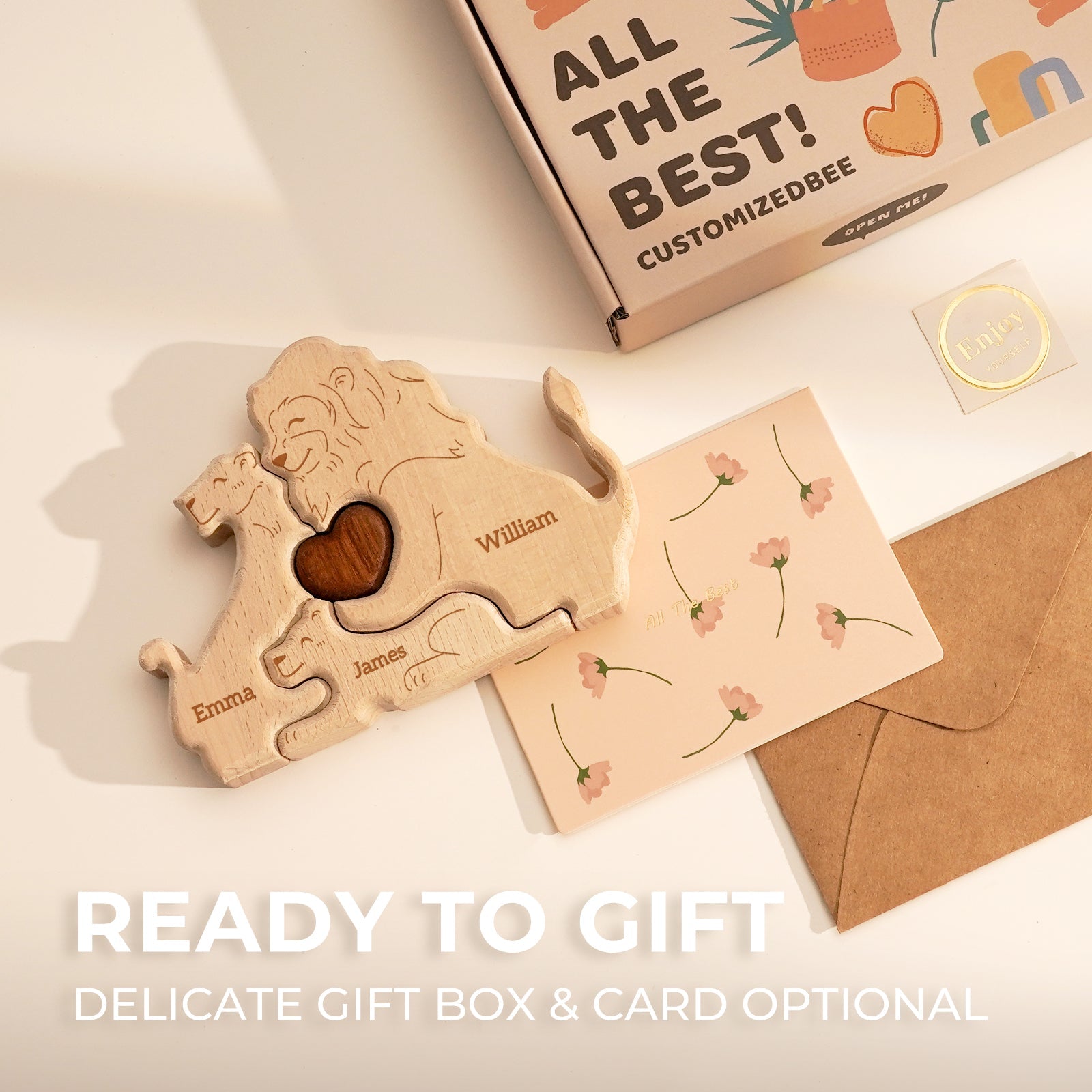 Let your family “lion pride” shine with a personalized wooden puzzle that tells your story—bold, strong, and full of love.