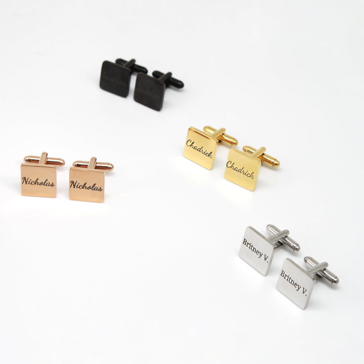 The polished surface reflects sophistication, while the engraved letters stand as subtle reminders of love, unity, or celebration—perfect for grooms, fathers, family members, or friends.