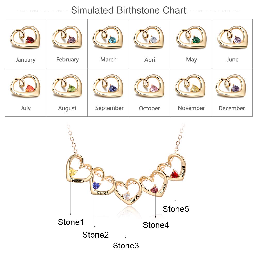 Personalized Heart Name Birthstone Necklace For Mom Grandma
