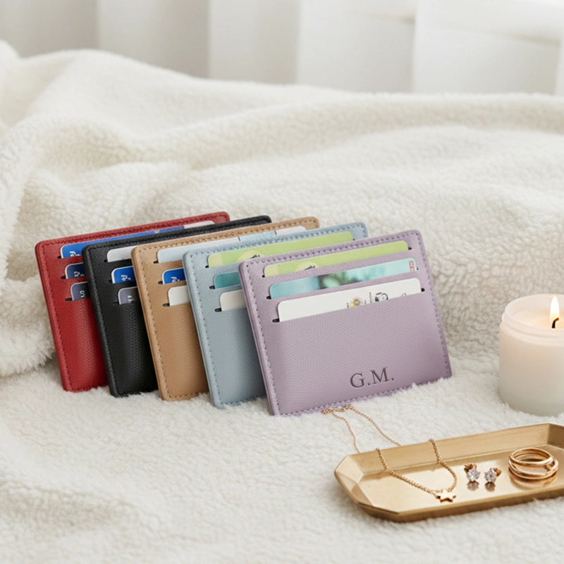 Personalized Leather Card Holder – Slim Genuine Leather Wallet | Custom Credit Card Case | Minimalist Business Card Wallet Gift for Him or Her