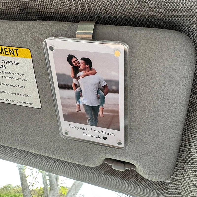 Personalized Long Distance Car Visor Clip – Custom Photo Gift to Keep Your Love Close on Every Drive