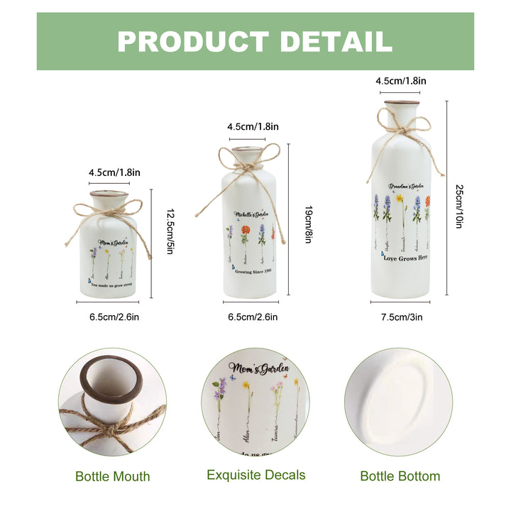 Personalized Mama's Garden Birth Flower Vase With Name For Birthday Gifts