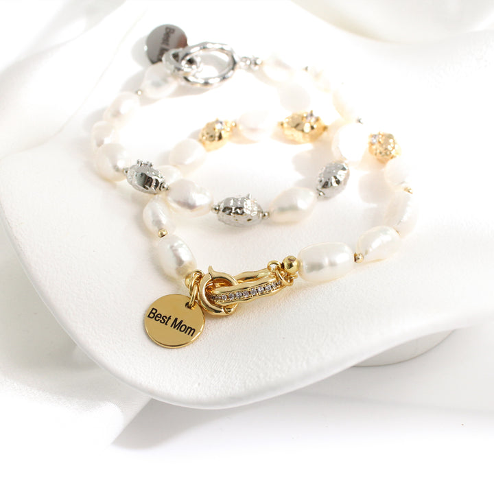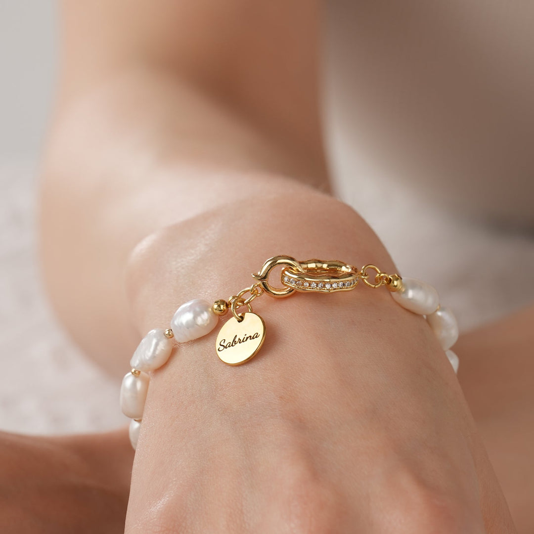 Personalized Freshwater Baroque Pearl Bracelet with Custom Name Charm – Elegant Jewelry Gift for Her