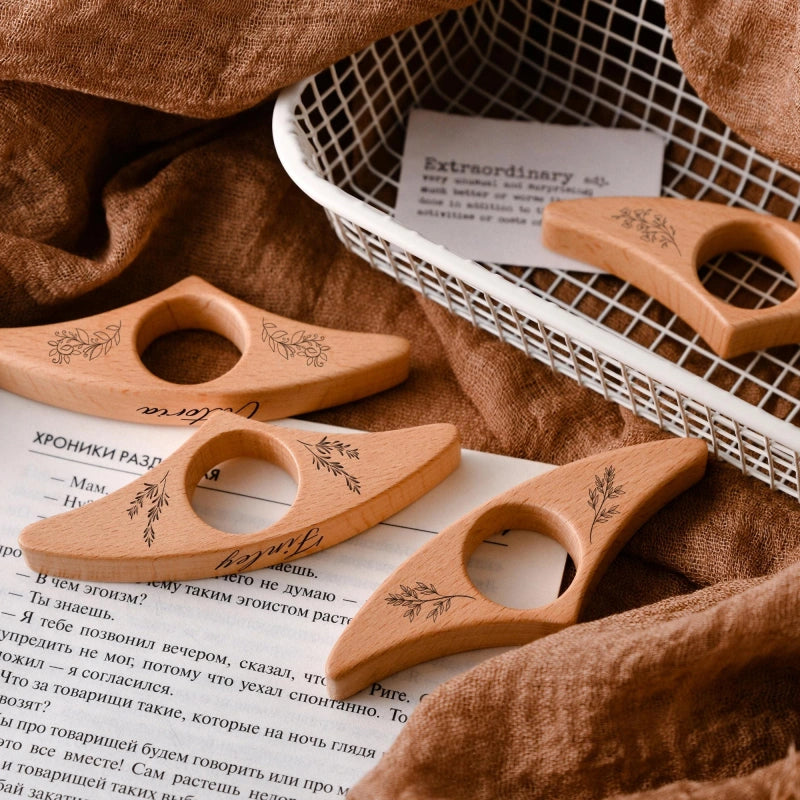 Carved from premium beech wood, this thumb ring gently holds your book open, reducing hand strain and preventing page collapse—perfect for long reading sessions, studying, cooking with a recipe book, or enjoying your favorite novel in bed.