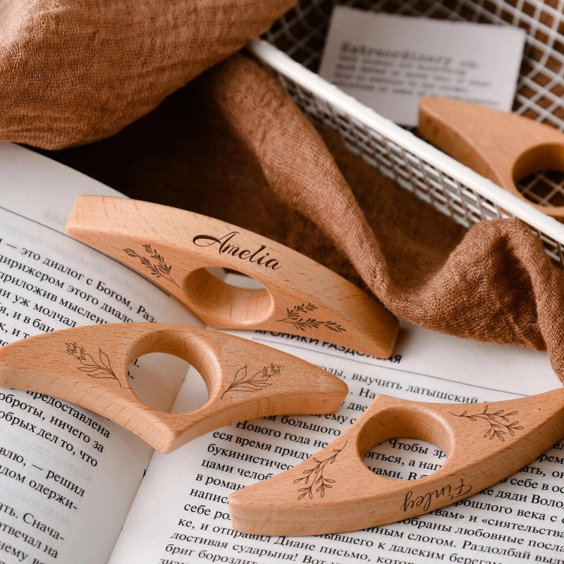 Personalized Thumb Book Page Holder – Custom Name Wooden Bookmark Ring for Readers & Book Lovers