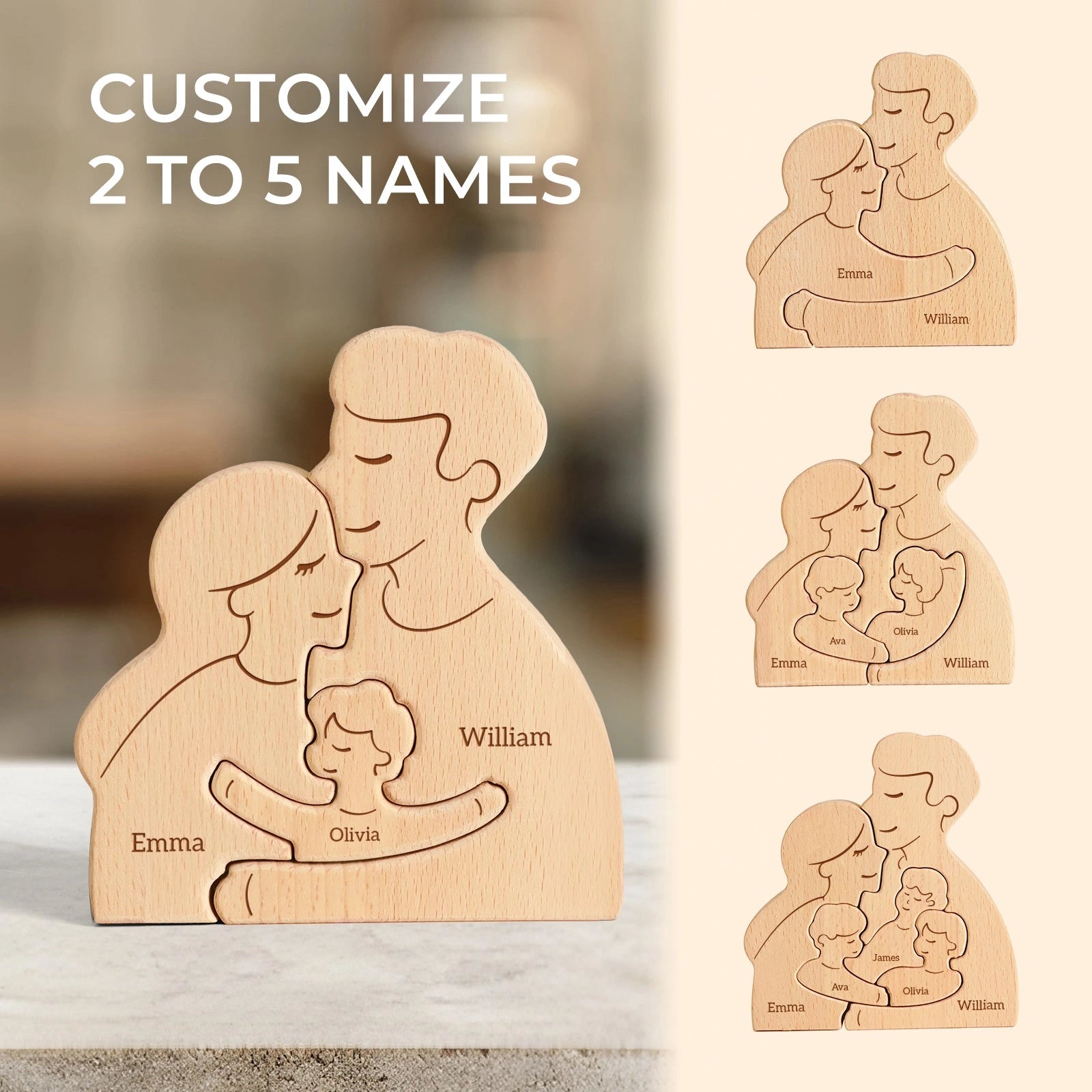 Celebrate the bond that holds your family together with this Personalized Wooden Family Puzzle, beautifully crafted and customized with 2–5 names. Designed as both a sentimental keepsake and stylish home décor, this puzzle makes a meaningful gift for parents, couples, friends, kids, and grandparents—perfect for birthdays, anniversaries, weddings, and housewarmings.