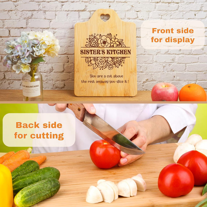 Crafted from premium, eco-friendly bamboo, this sister-themed cutting board is naturally waterproof, scratch-resistant, and easy to clean. Its polished surface features laser-engraved heartfelt phrases like "No Matter How You Slice It, You’re the Best!" with fade-resistant clarity. Rounded edges and a food-safe oil finish ensure durability, stain resistance, and moisture protection, blending practicality with sentimental artistry.