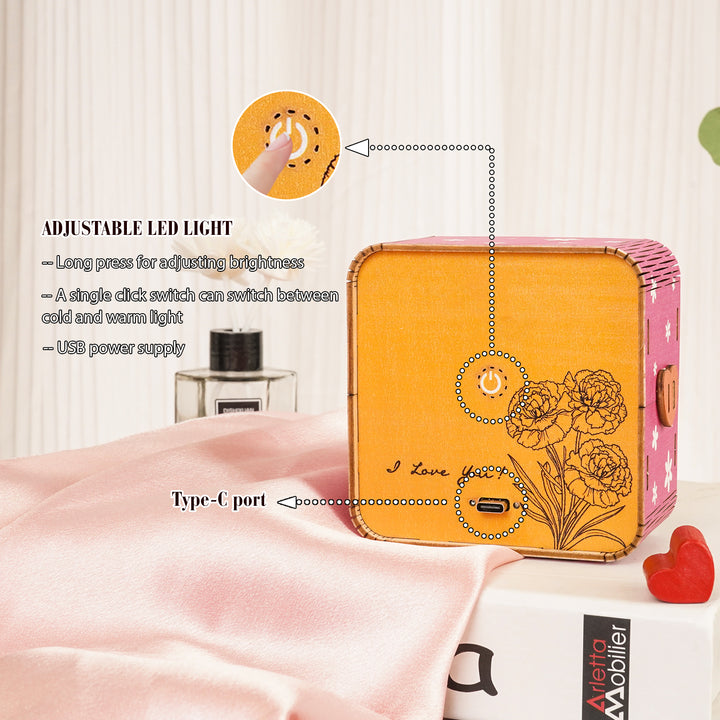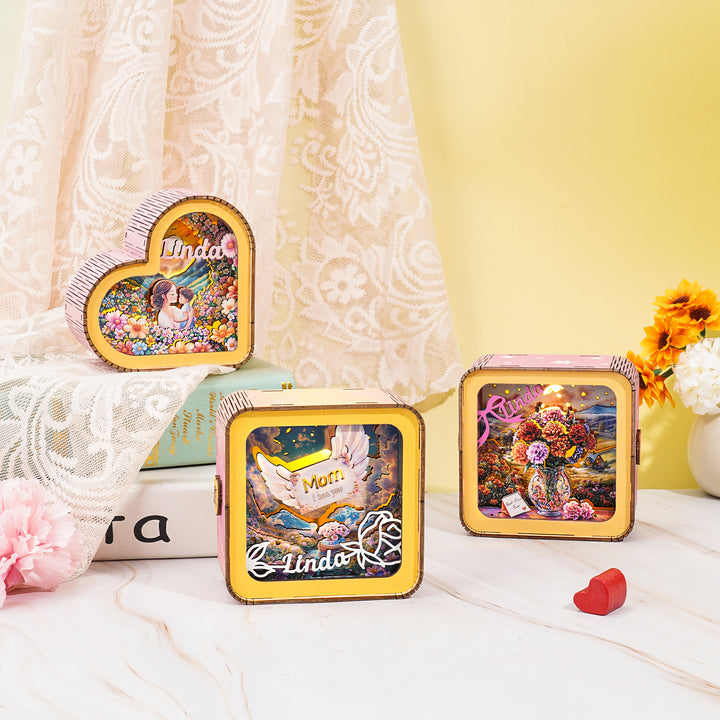 As a product expert, I introduce our “Words fail, love endures” Kit- a wooden 3D puzzle that doubles as a night light. With easy assembly and intricate design, this kit offers a unique decoration and a thoughtful Mother's Day gift option. 100% handmade and personalized.