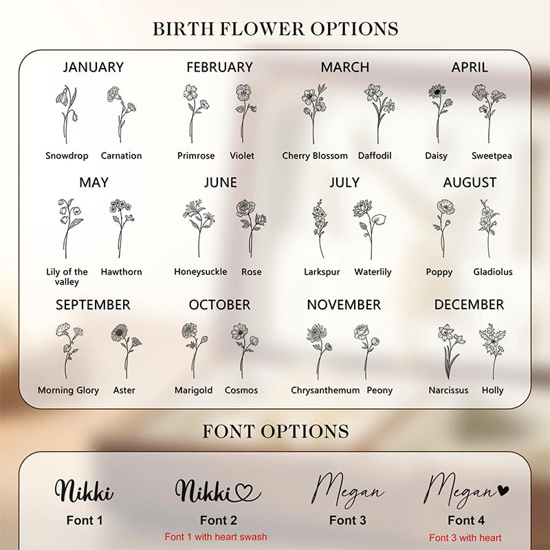 Gravação personalizável da flor de nascimento: Adicione a flor de nascimento da pessoa homenageada, o nome ou uma mensagem especial para um toque único.