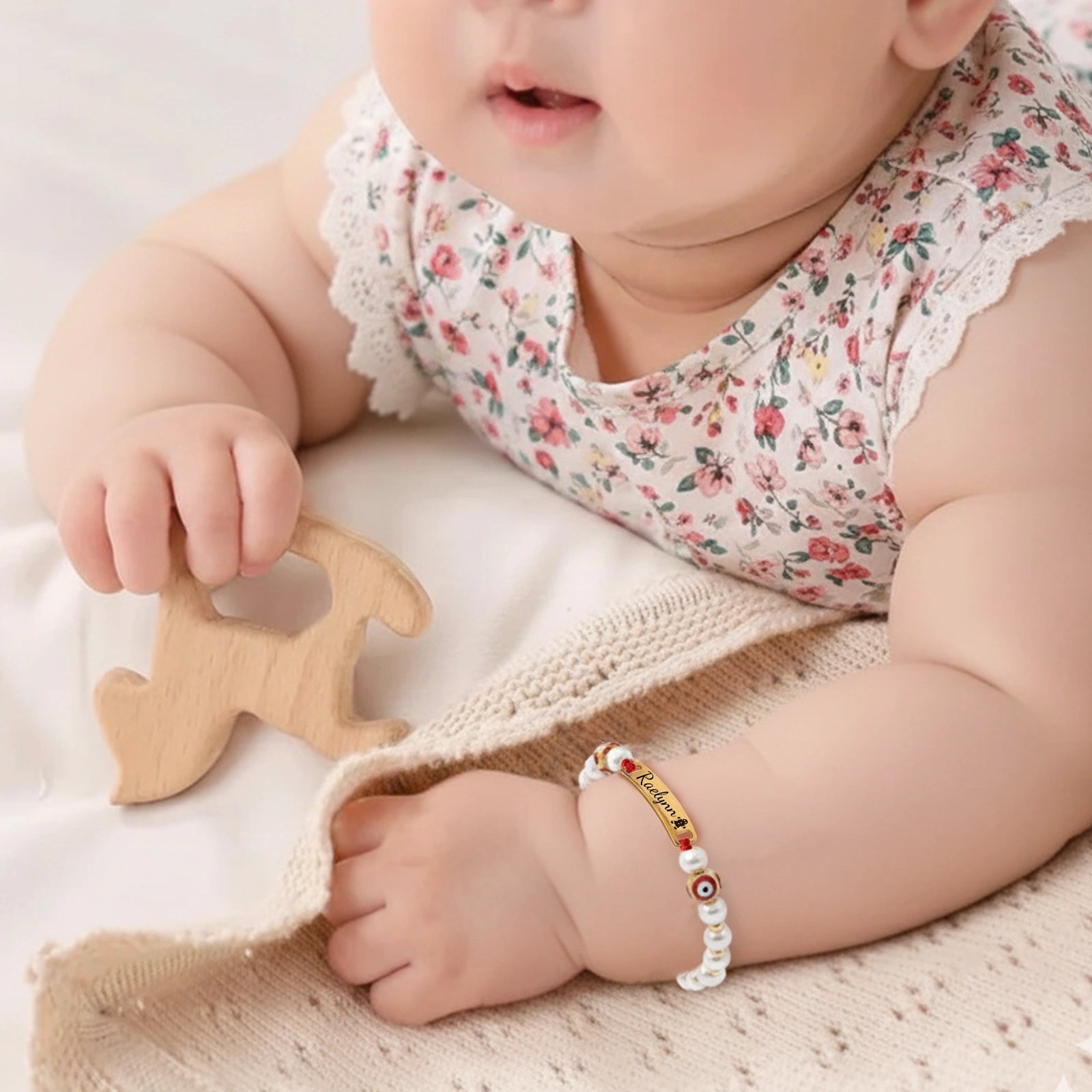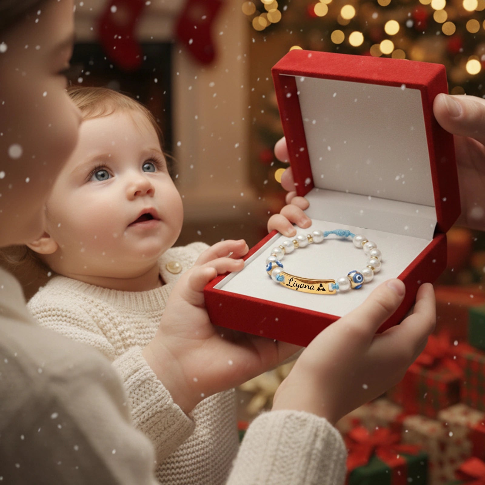 Protect your little one with a touch of tradition and love. This Personalized Devil Eye Baby Bracelet blends the ancient Evil Eye symbol of protection with your baby’s unique birth details — a keepsake that celebrates both culture and care.