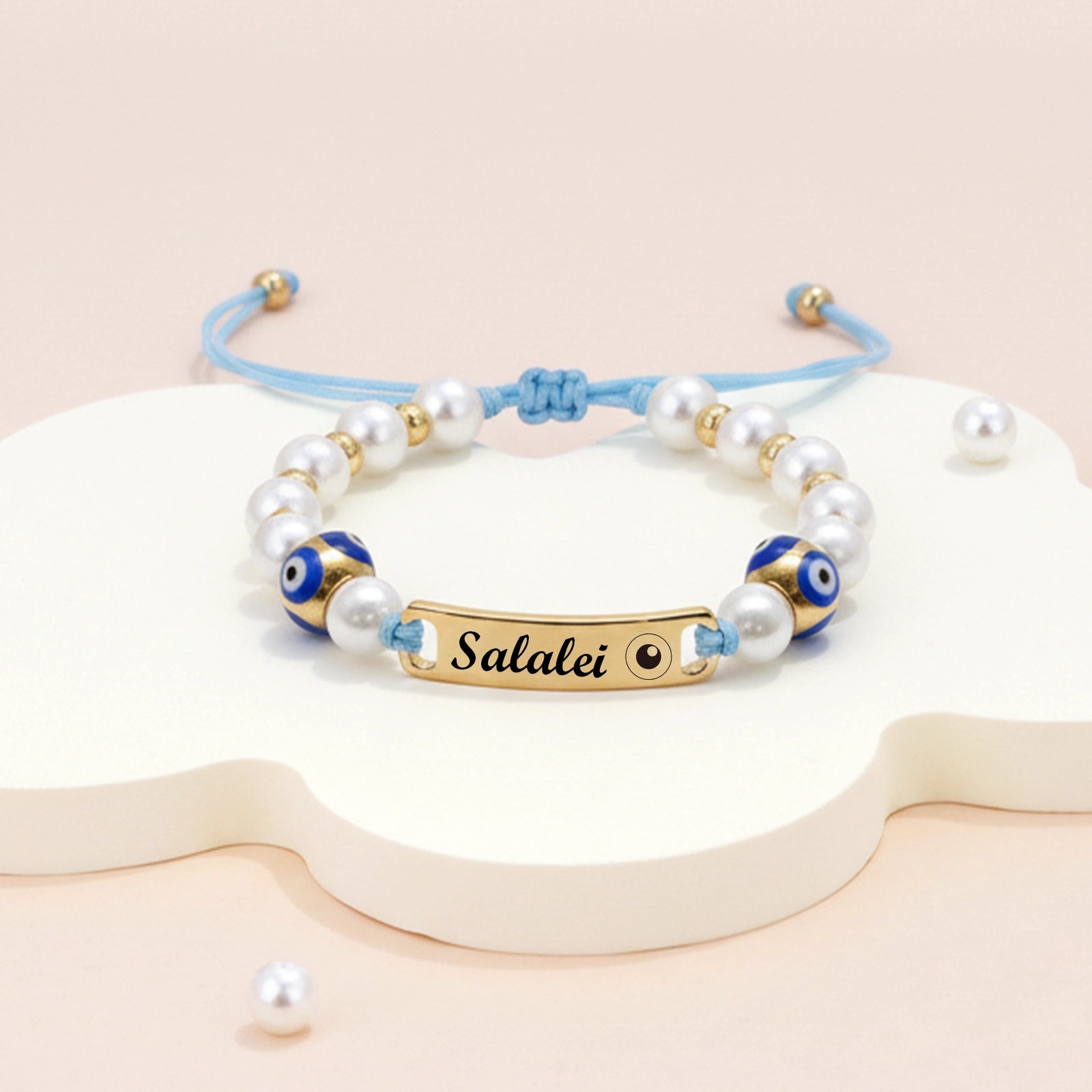 Personalized Evil Eye Baby Bracelet – Custom Handwoven Birth Keepsake for Newborns & Infants